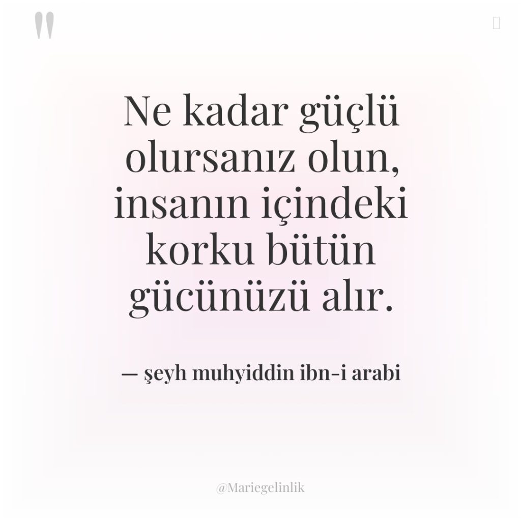 Ne kadar güçlü olursanız olun, insanın içindeki korku bütün gücünüzü…