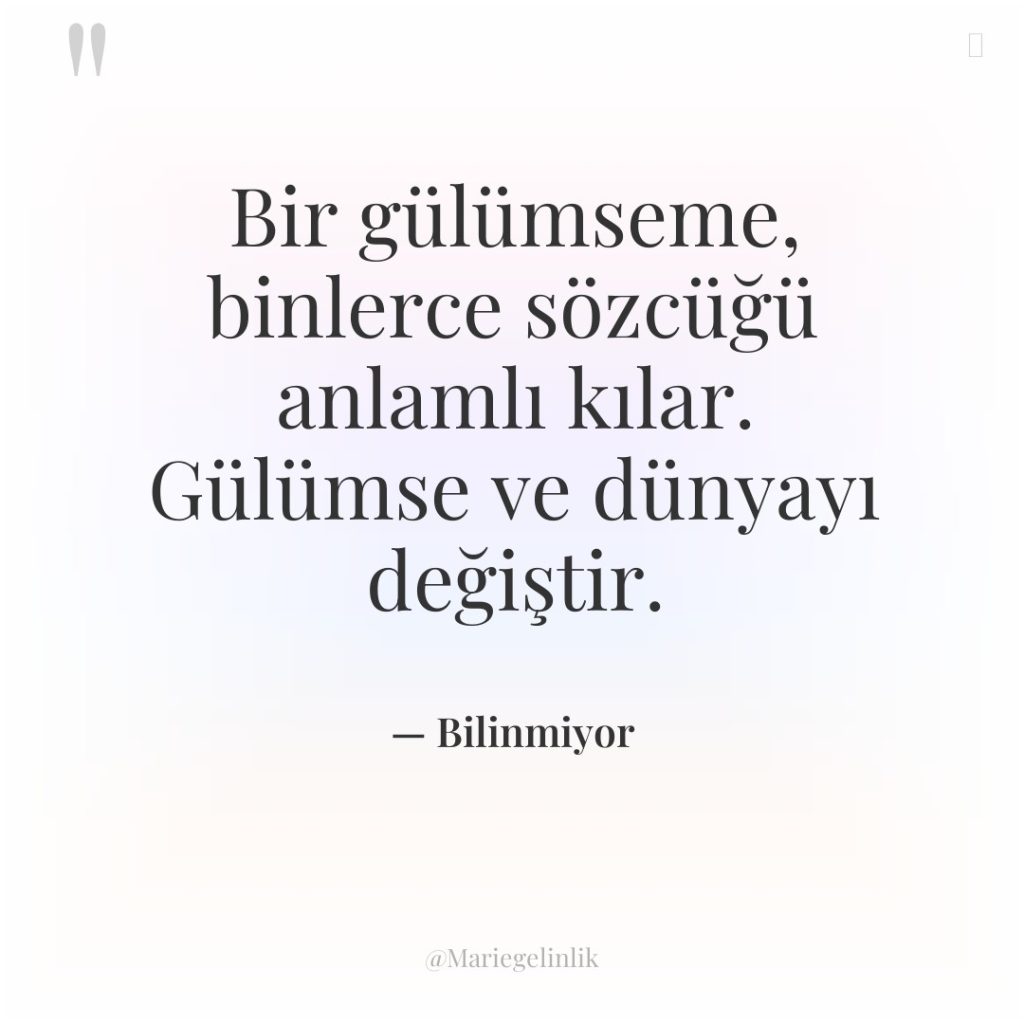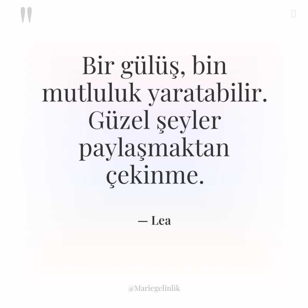 Bir gülüş, bin mutluluk yaratabilir. Güzel şeyler paylaşmaktan çekinme.
