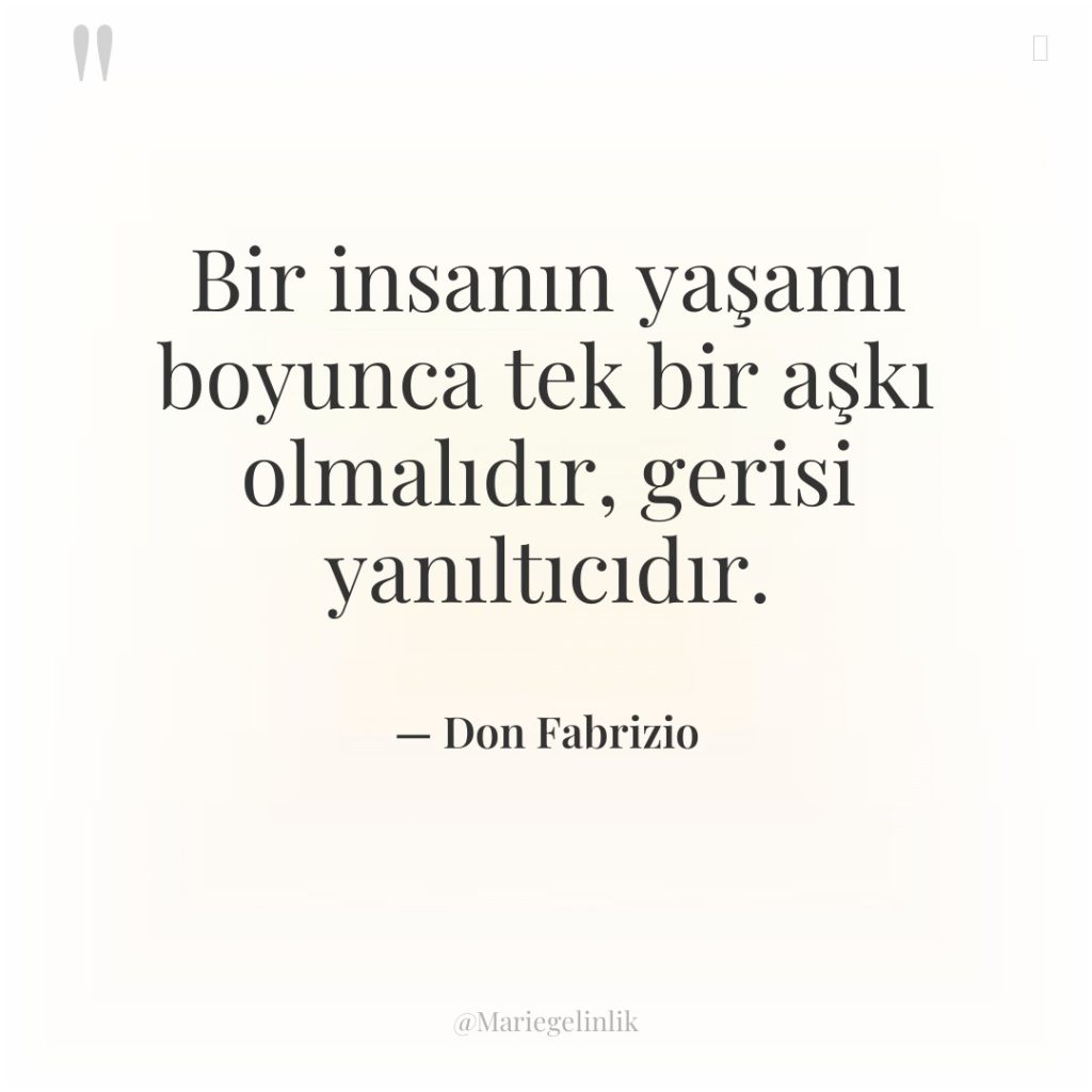 Bir insanın yaşamı boyunca tek bir aşkı olmalıdır, gerisi yanıltıcıdır.