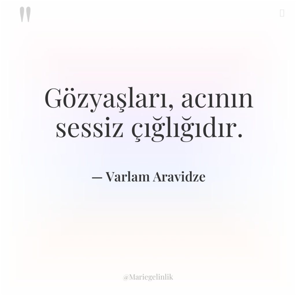 Gözyaşları, acının sessiz çığlığıdır. — Varlam Aravidze #acı #Duygusal #Film Replikleri 0 0 Kopyala WhatsApp'ta Paylaş Twitter'da Paylaş