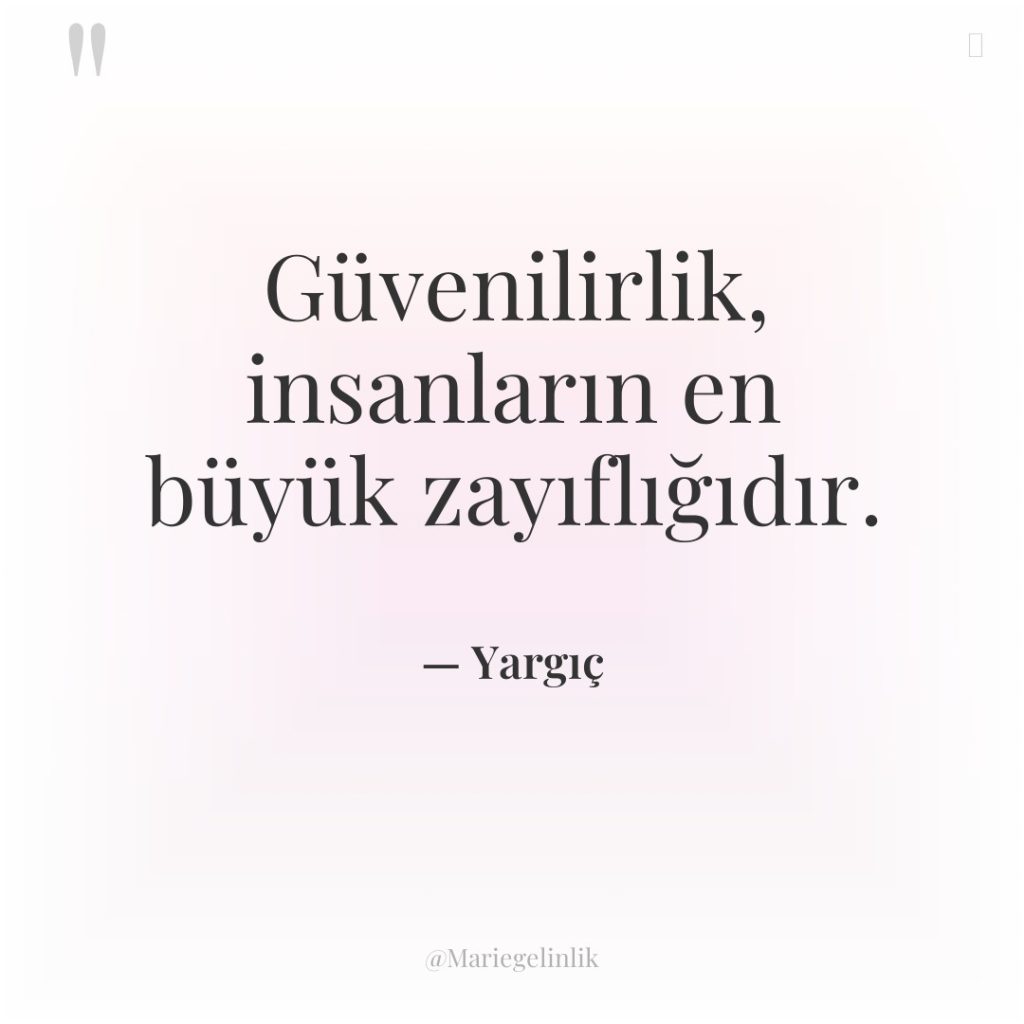 Güvenilirlik, insanların en büyük zayıflığıdır. — Yargıç #Film Replikleri #güven #zayıflık 0 0 Kopyala WhatsApp'ta Paylaş Twitter'da Paylaş