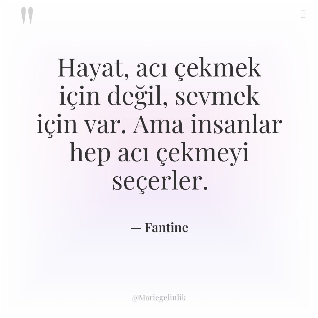 Hayat, acı çekmek için değil, sevmek için var. Ama insanlar hep acı çekmeyi seçerler. — Fantine #aşk #Film Replikleri #hayatın anlamı 0 0 Kopyala WhatsApp'ta Paylaş Twitter'da Paylaş