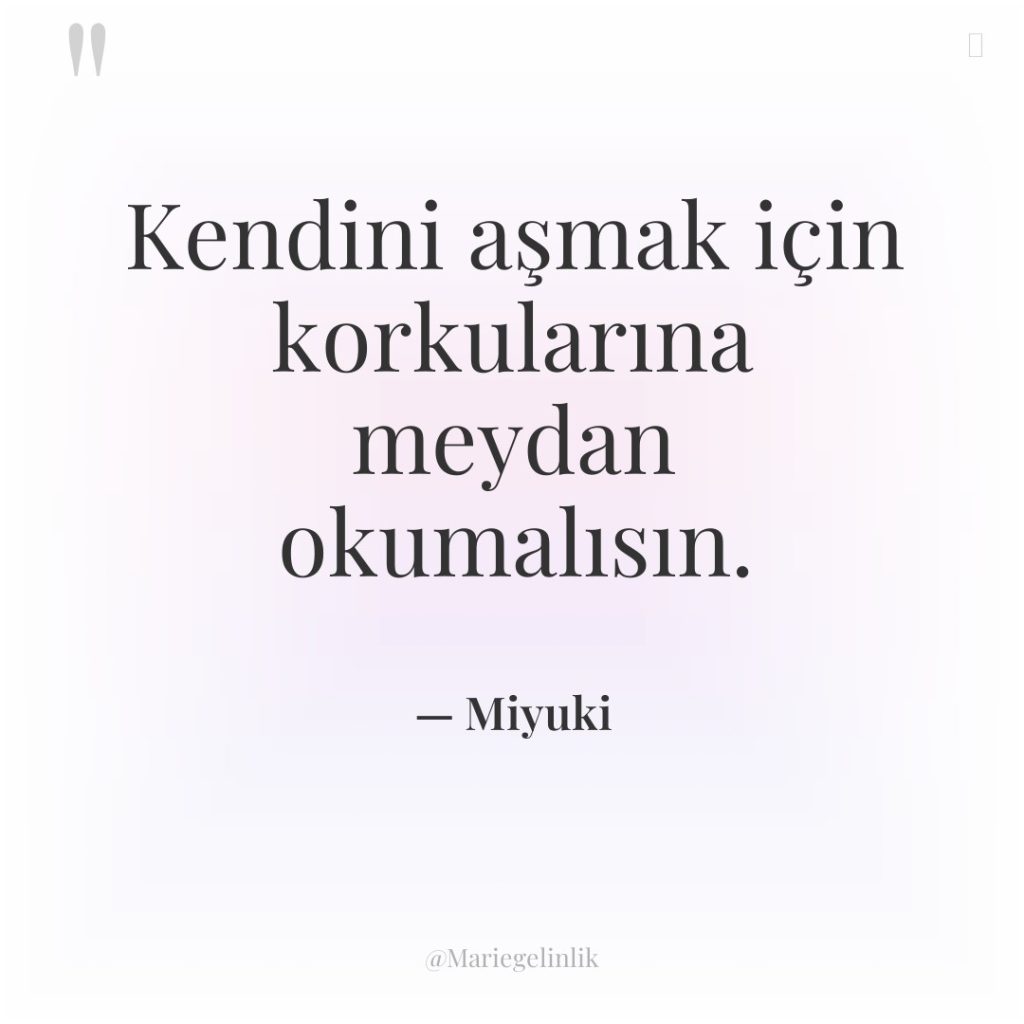 Kendini aşmak için korkularına meydan okumalısın. — Miyuki #Film Replikleri #Kisisel gelisim #korku 0 0 Kopyala WhatsApp'ta Paylaş Twitter'da Paylaş