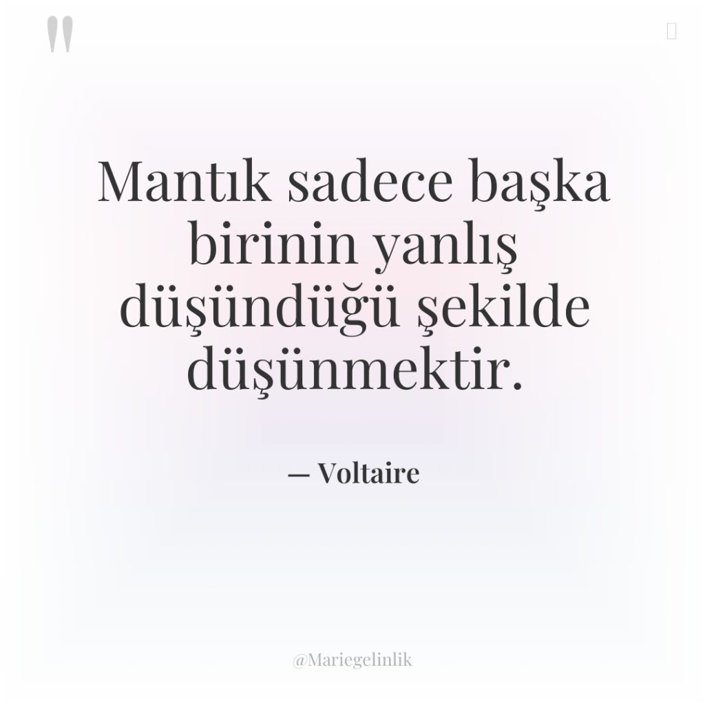 Mantık sadece başka birinin yanlış düşündüğü şekilde düşünmektir. — Voltaire #düşünce #Film Replikleri #Mantık 0 0 Kopyala WhatsApp'ta Paylaş Twitter'da Paylaş