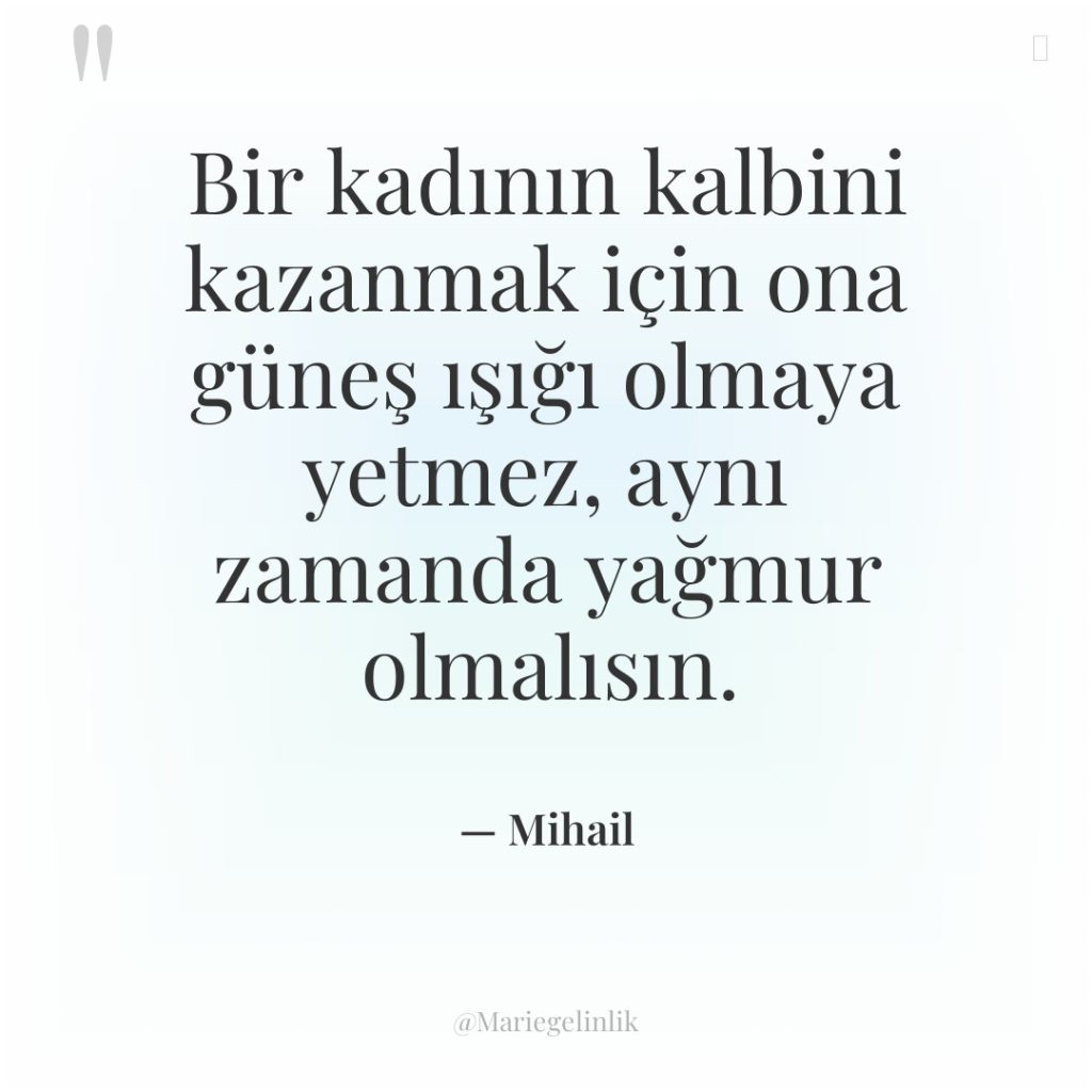 Bir kadının kalbini kazanmak için ona güneş ışığı olmaya yetmez, aynı zamanda yağmur olmalısın.