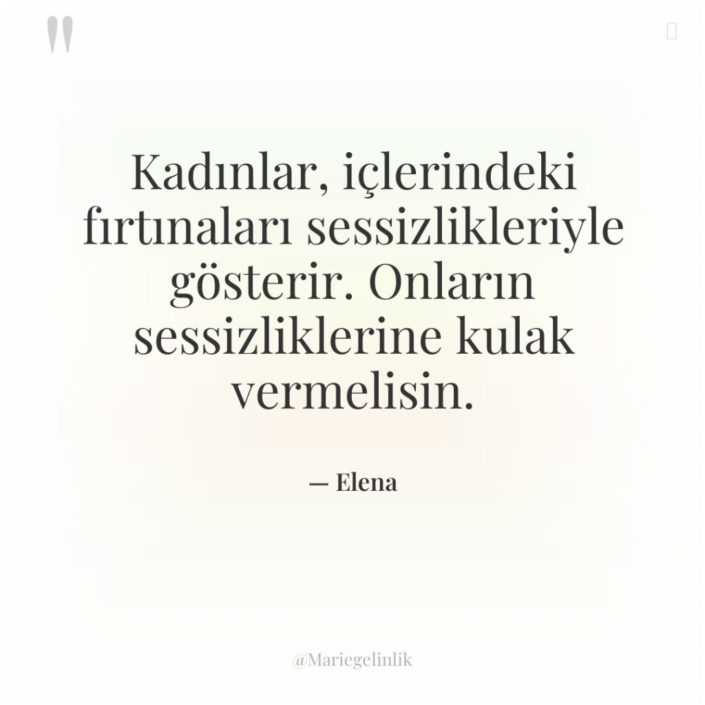 Kadınlar, içlerindeki fırtınaları sessizlikleriyle gösterir. Onların sessizliklerine kulak vermelisin.