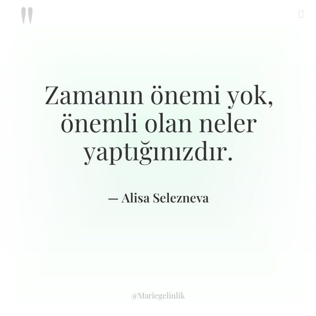 Zamanın önemi yok, önemli olan neler yaptığınızdır.
