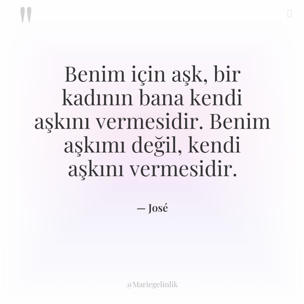 Benim için aşk, bir kadının bana kendi aşkını vermesidir. Benim aşkımı değil, kendi aşkını vermesidir.