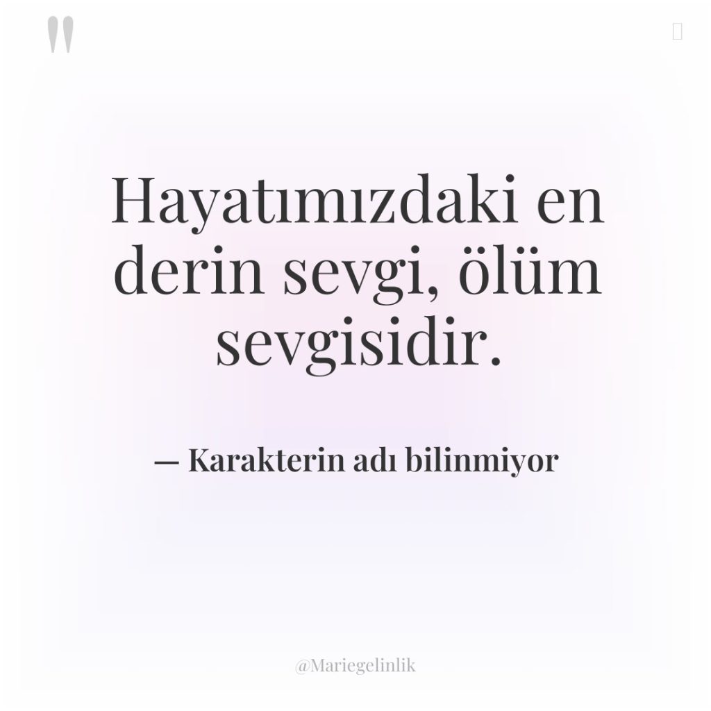 Hayatımızdaki en derin sevgi, ölüm sevgisidir.