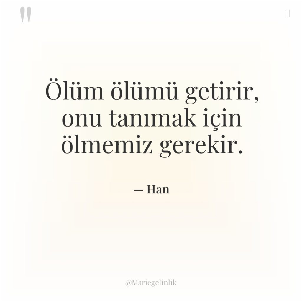 Ölüm ölümü getirir, onu tanımak için ölmemiz gerekir.