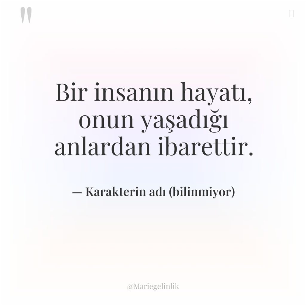 Bir insanın hayatı, onun yaşadığı anlardan ibarettir.