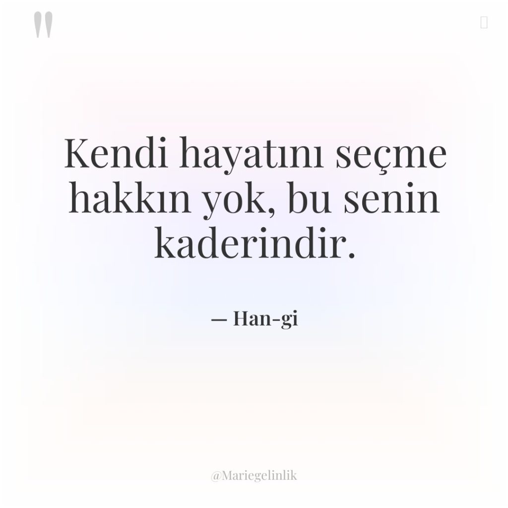 Kendi hayatını seçme hakkın yok, bu senin kaderindir.