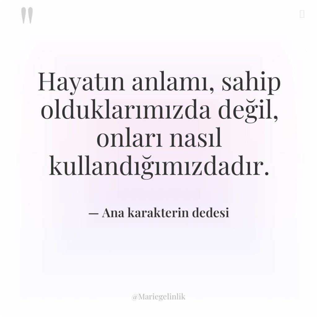 Hayatın anlamı, sahip olduklarımızda değil, onları nasıl kullandığımızdadır.