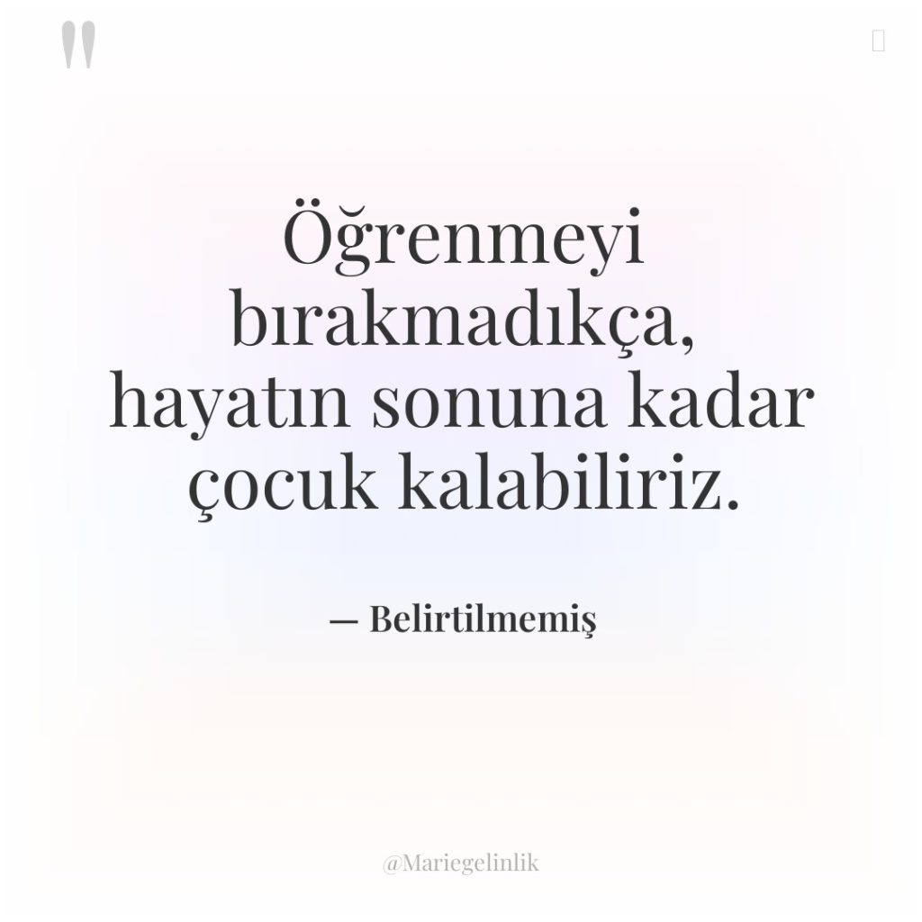 Öğrenmeyi bırakmadıkça, hayatın sonuna kadar çocuk kalabiliriz.