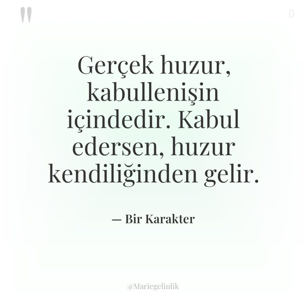 Gerçek huzur, kabullenişin içindedir. Kabul edersen, huzur kendiliğinden gelir.