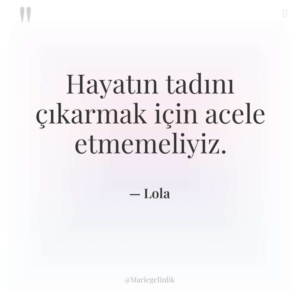 Hayatın tadını çıkarmak için acele etmemeliyiz.