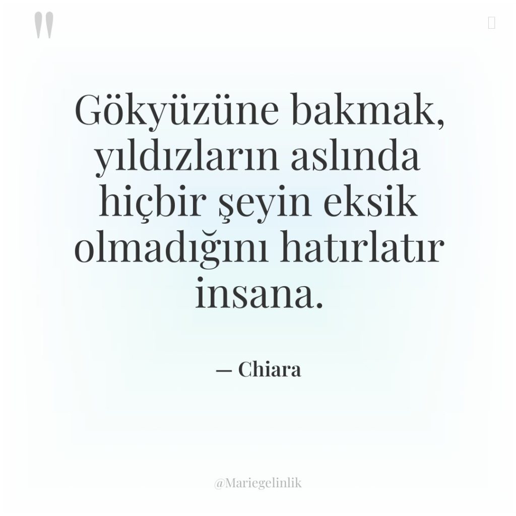Gökyüzüne bakmak, yıldızların aslında hiçbir şeyin eksik olmadığını hatırlatır insana.