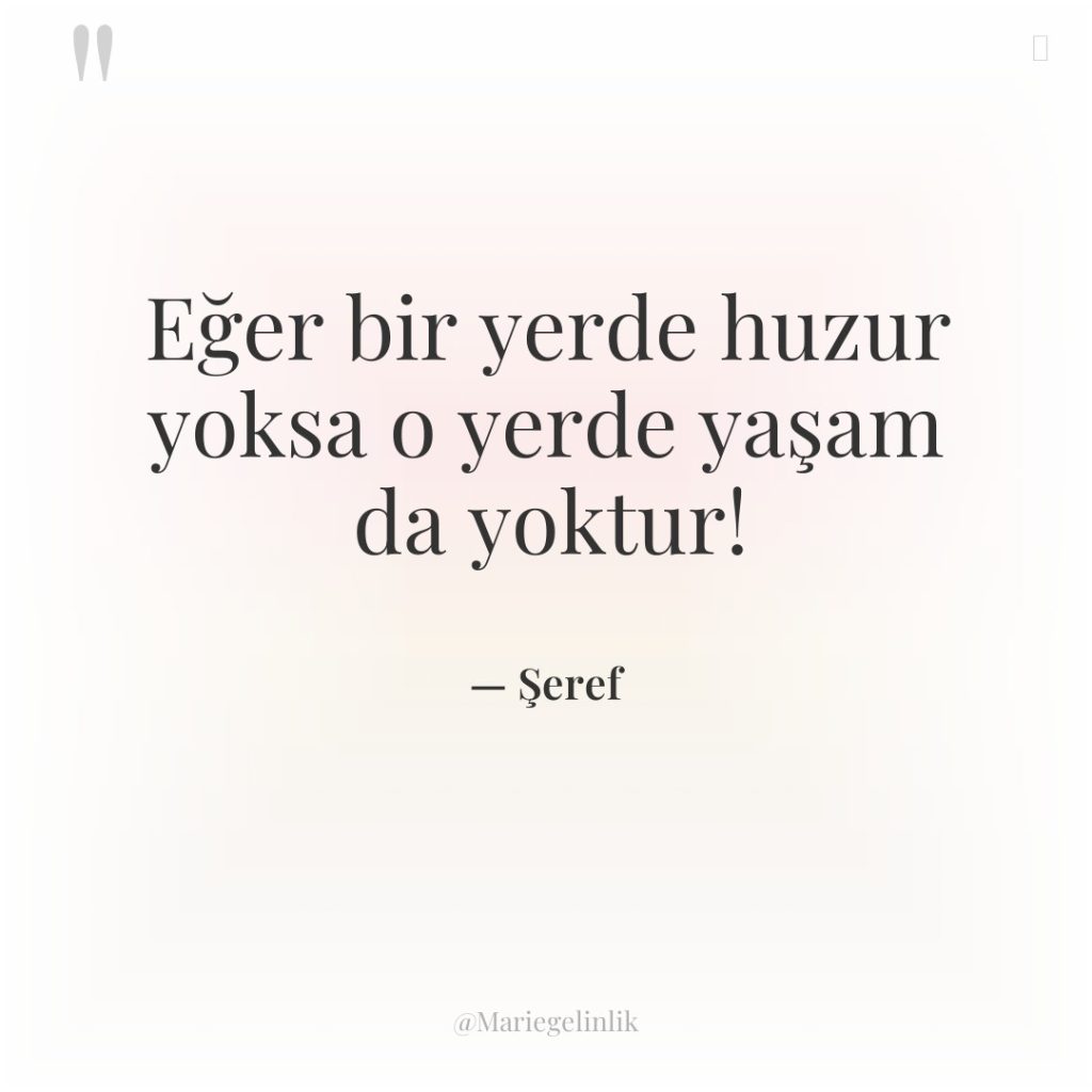 Eğer bir yerde huzur yoksa o yerde yaşam da yoktur!