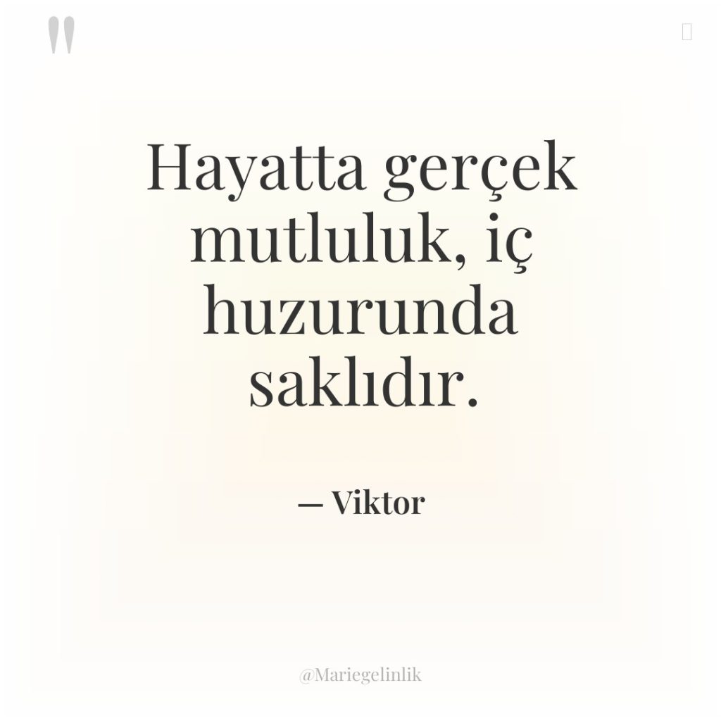 Hayatta gerçek mutluluk, iç huzurunda saklıdır.
