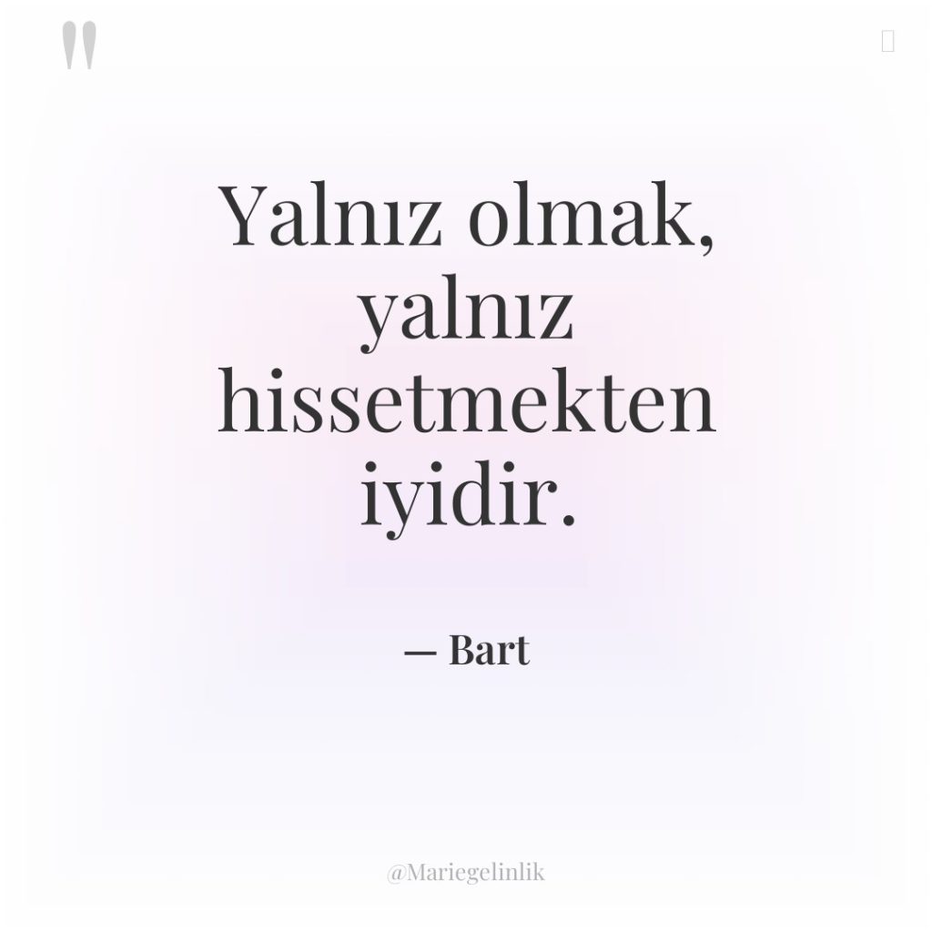 Yalnız olmak, yalnız hissetmekten iyidir.