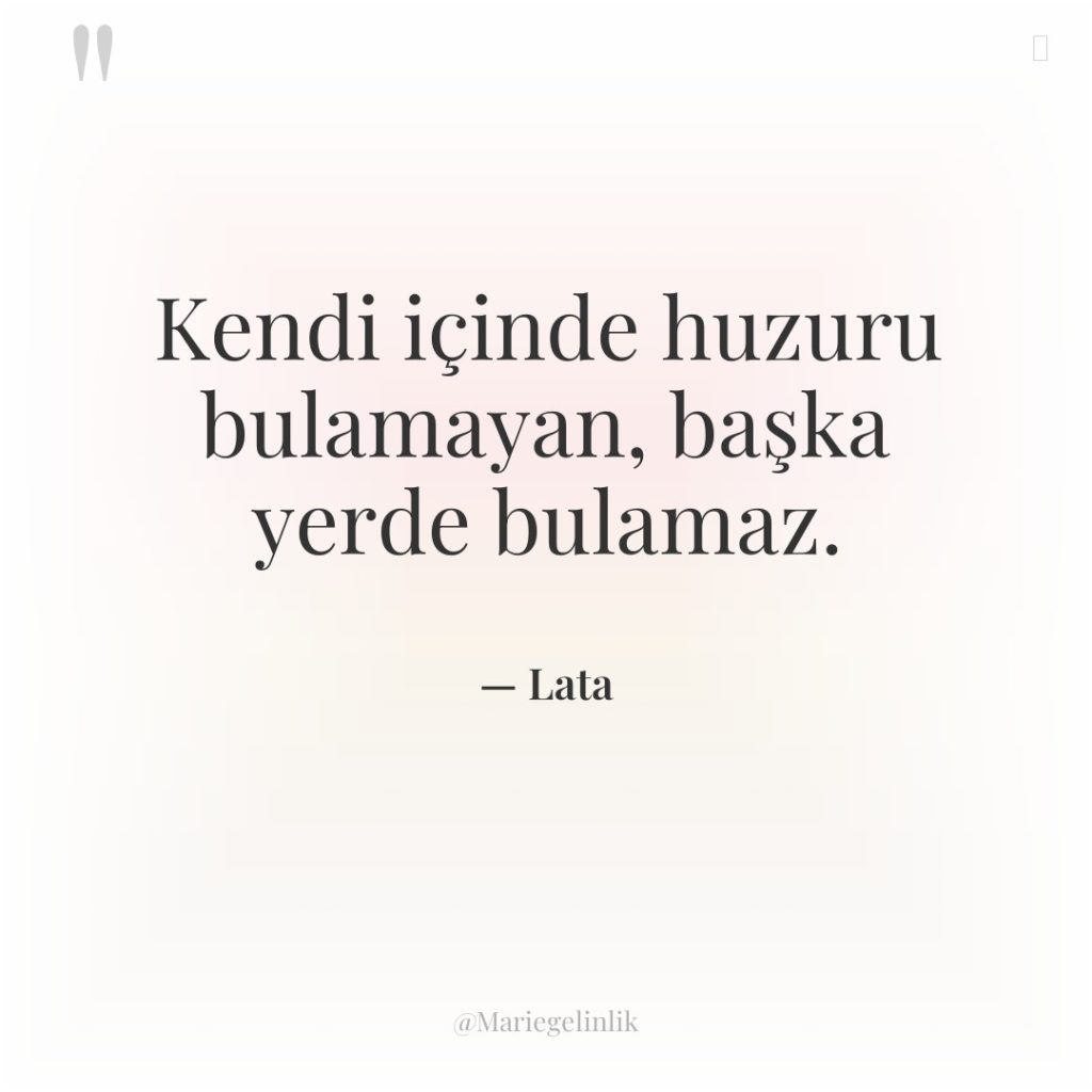Kendi içinde huzuru bulamayan, başka yerde bulamaz.