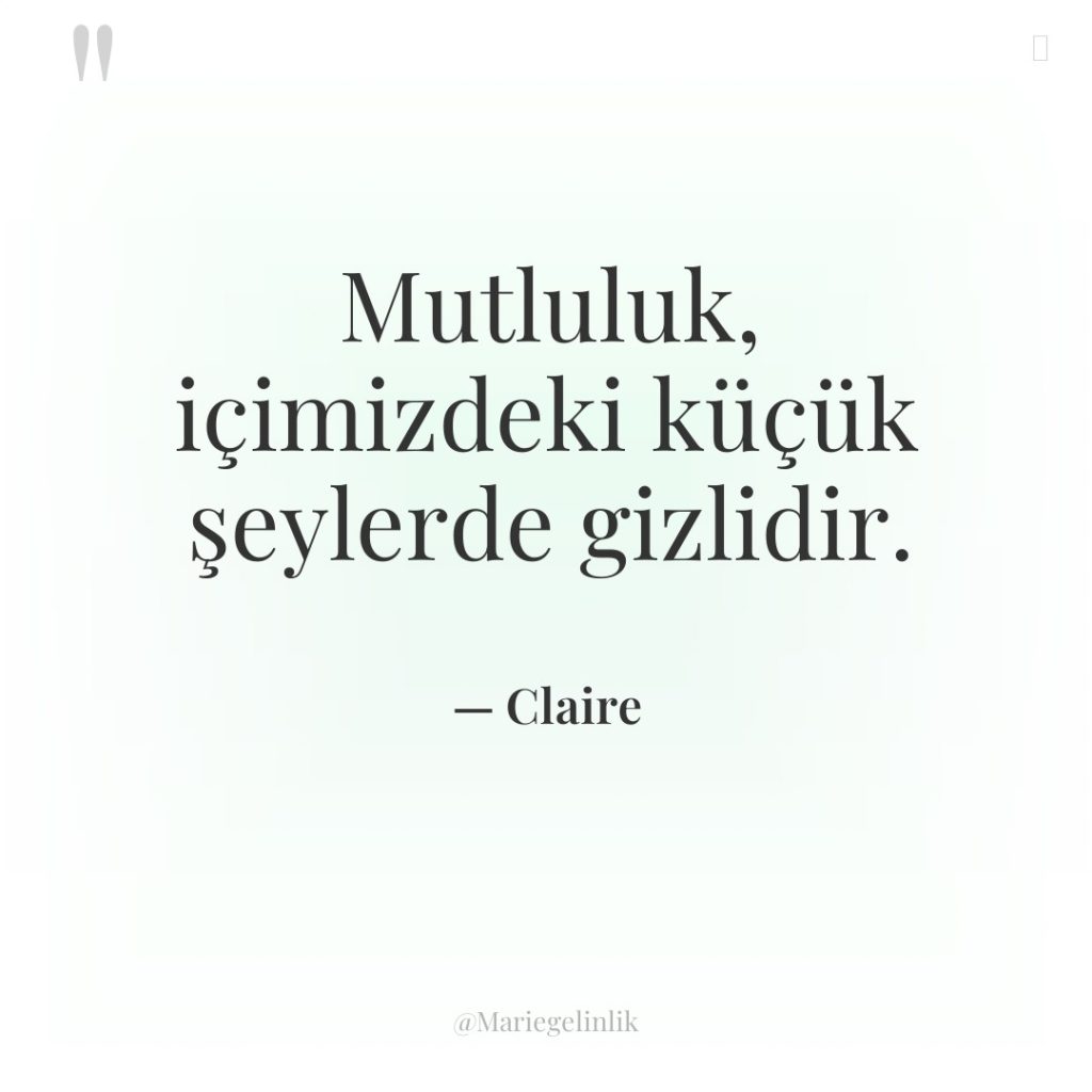 Mutluluk, içimizdeki küçük şeylerde saklıdır. Onları keşfetmek gerekir.