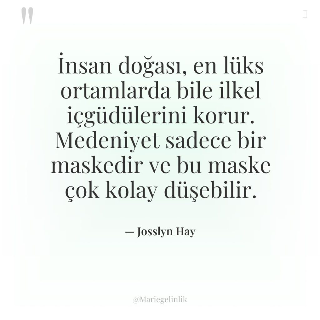 İnsan doğası, en lüks ortamlarda bile ilkel içgüdülerini korur. Medeniyet sadece bir maskedir ve bu maske çok kolay düşebilir.