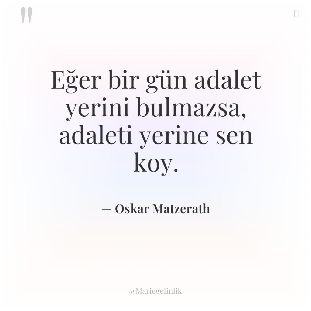 Eğer bir gün adalet yerini bulmazsa, adaleti yerine sen koy.
