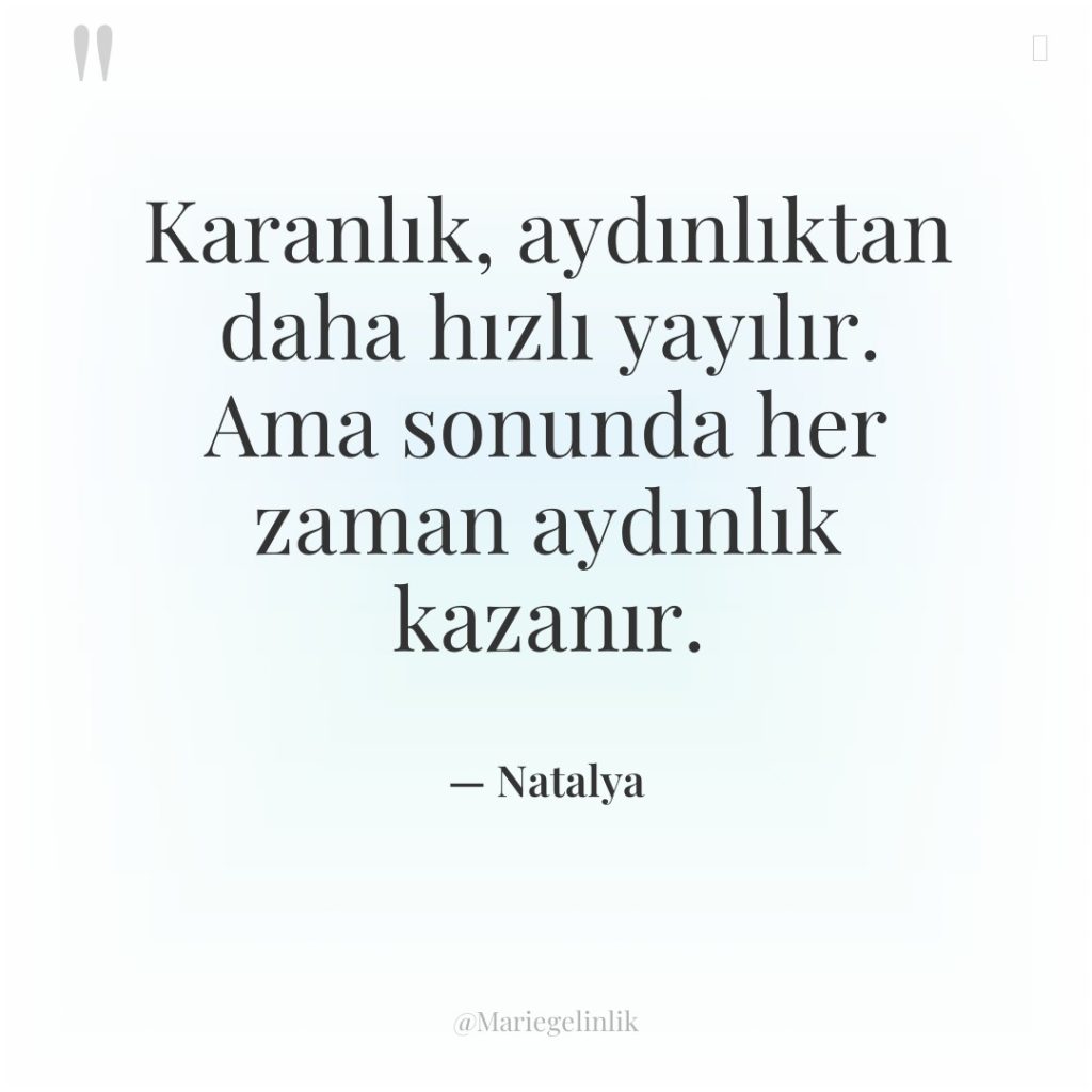 Karanlık, aydınlıktan daha hızlı yayılır. Ama sonunda her zaman aydınlık…