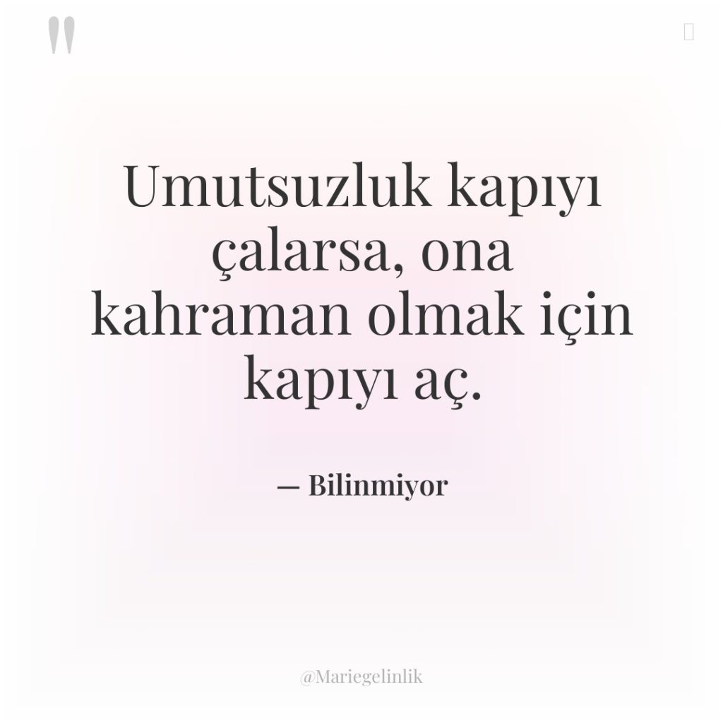 Umutsuzluk kapıyı çalarsa, ona kahraman olmak için kapıyı aç.