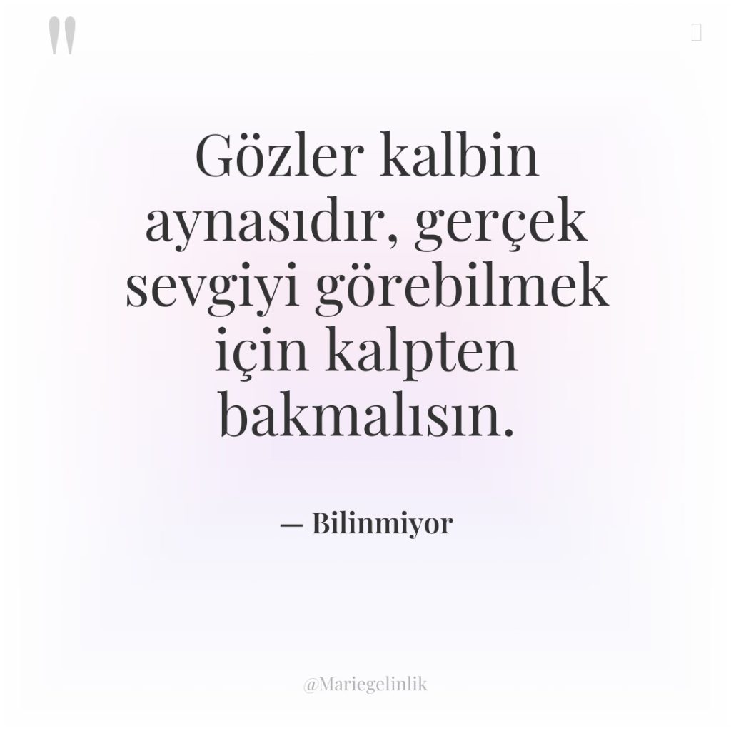 Gözler kalbin aynasıdır, gerçek sevgiyi görebilmek için kalpten bakmalısın.