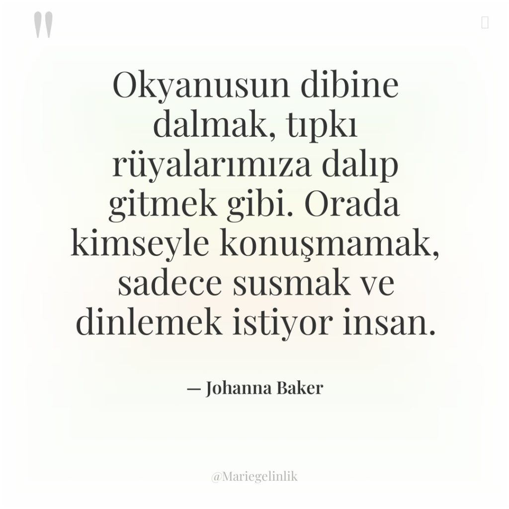 Okyanusun dibine dalmak, tıpkı rüyalarımıza dalıp gitmek gibi. Orada kimseyle…