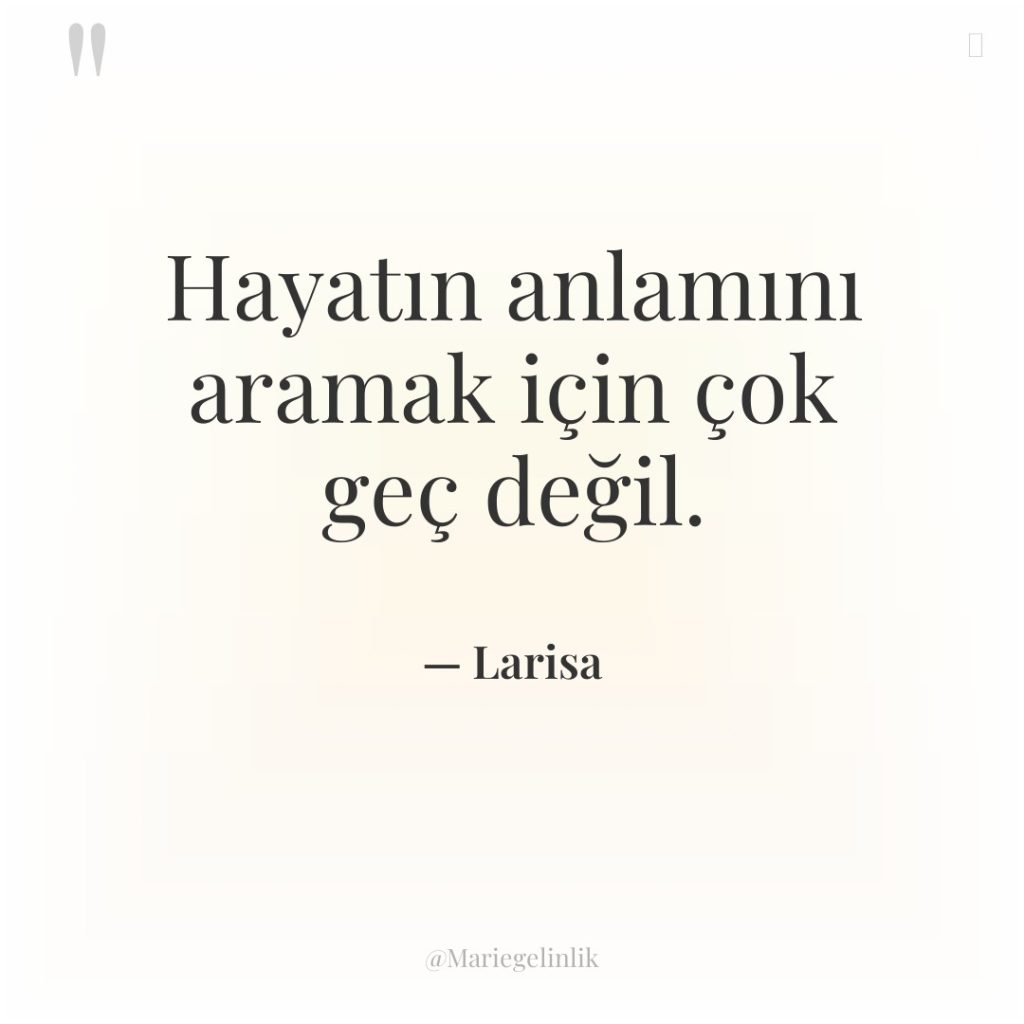 Hayatın anlamını aramak için çok geç değil.