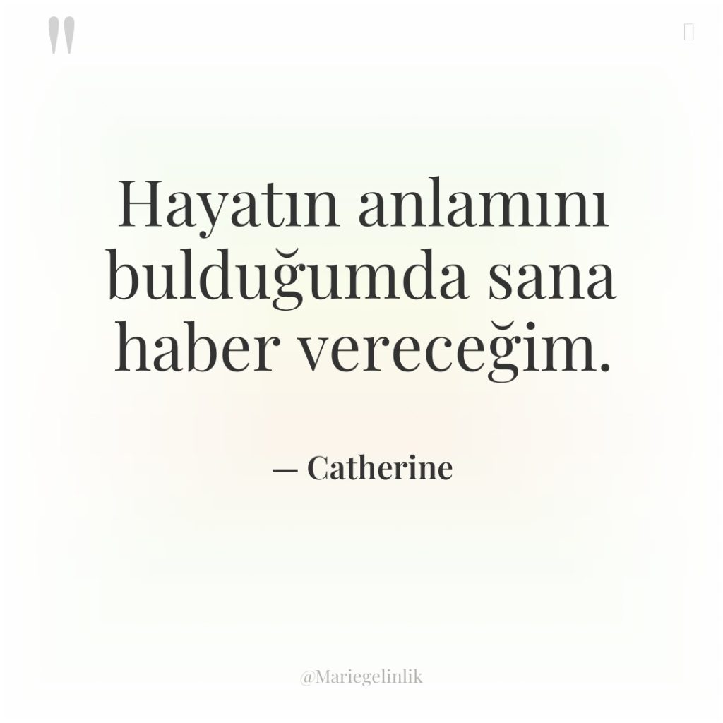 Hayatın anlamını bulduğumda sana haber vereceğim.