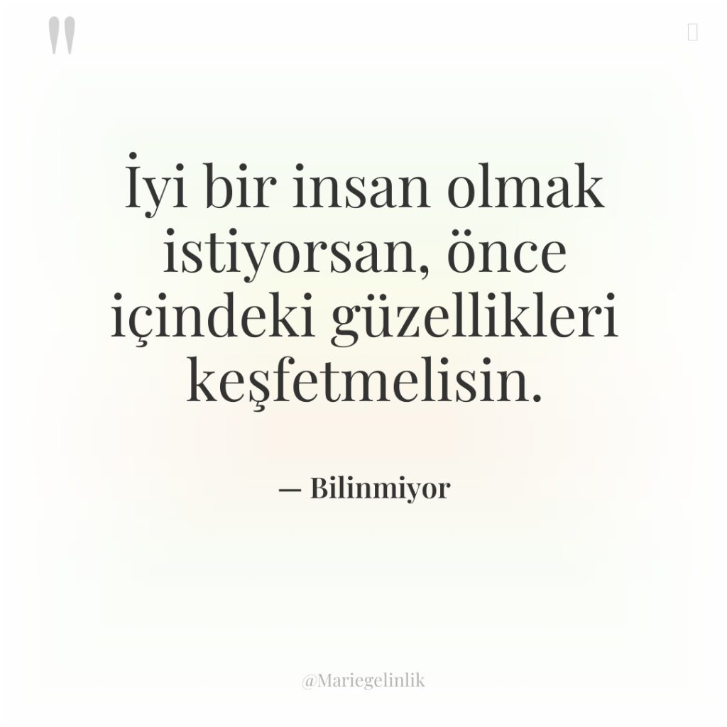 İyi bir insan olmak istiyorsan, önce içindeki güzellikleri keşfetmelisin.