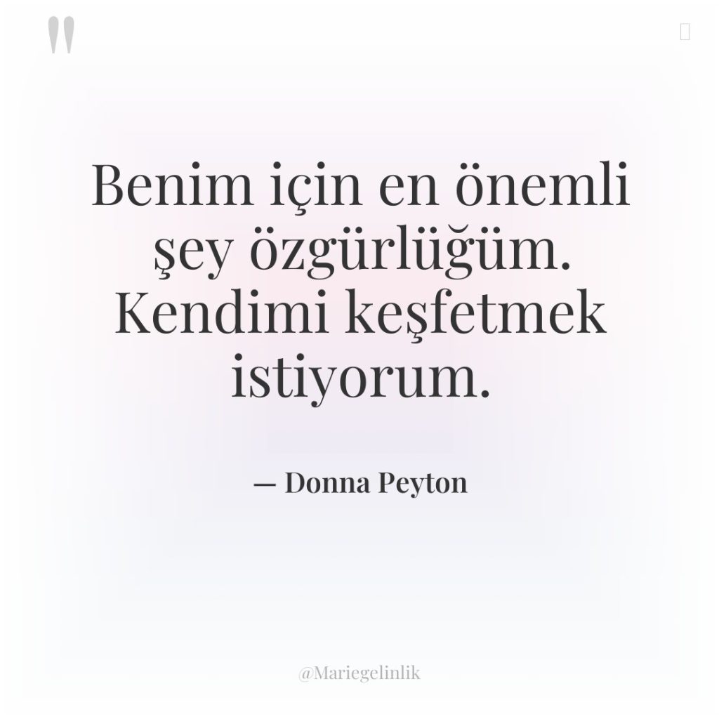 Benim için en önemli şey özgürlüğüm. Kendimi keşfetmek istiyorum.