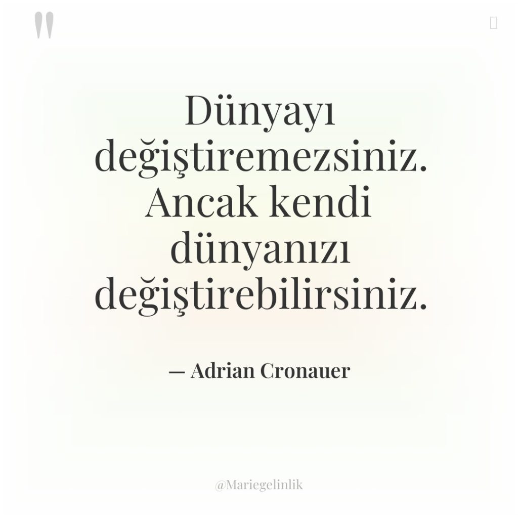 İçinde yaşadığımız dünyayı değiştiremeyiz ama ona karşı tavrımızı değiştirebiliriz.