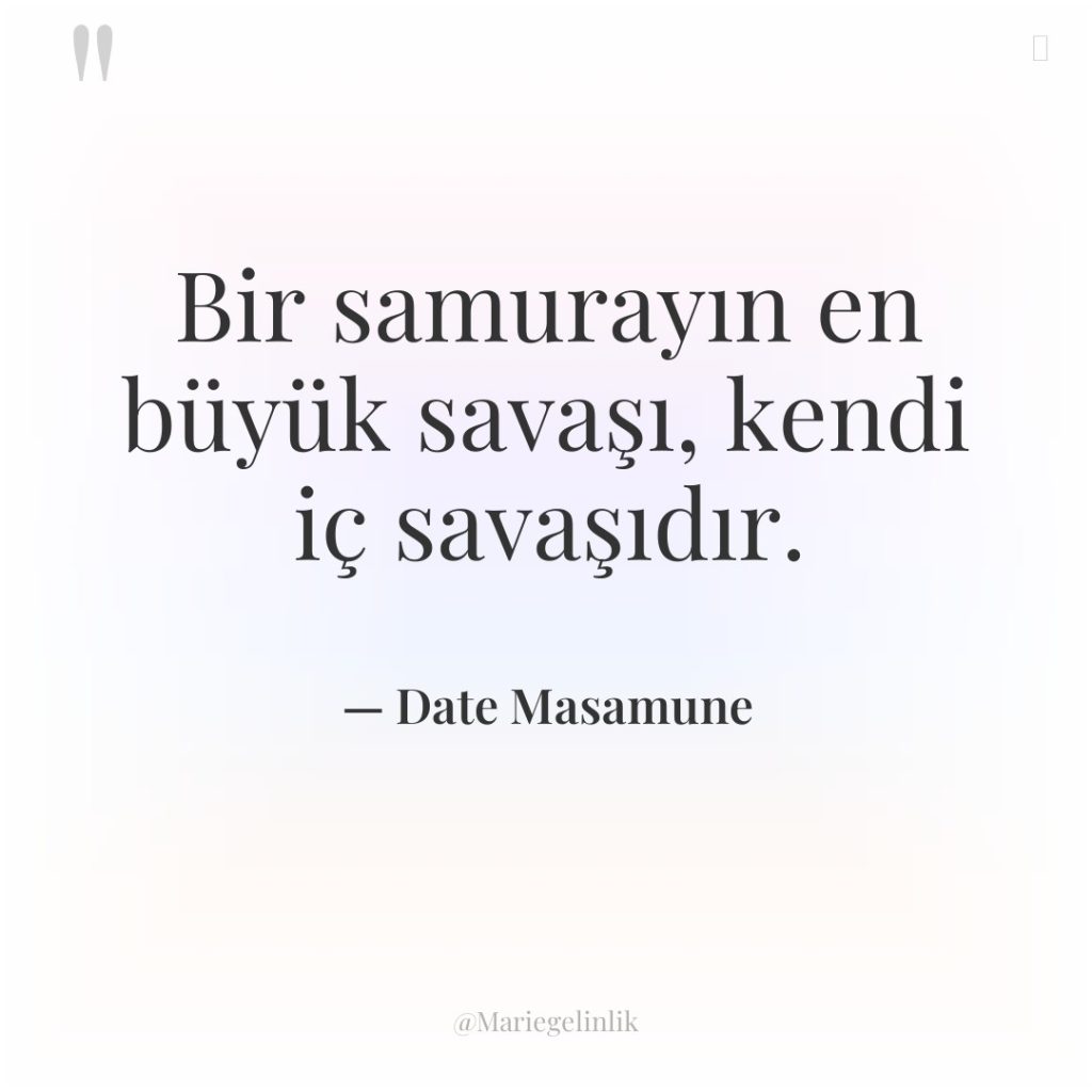 Bazen en büyük savaş, kendinle verdiğin savaştır.