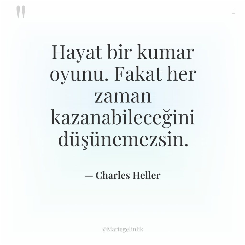 Hayat bir kumar oyunu. Fakat her zaman kazanabileceğini düşünemezsin.