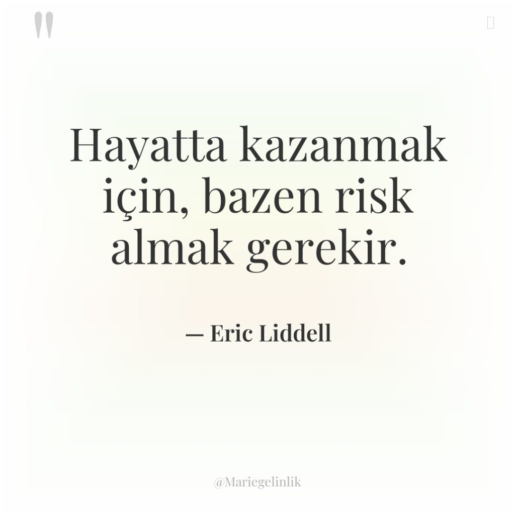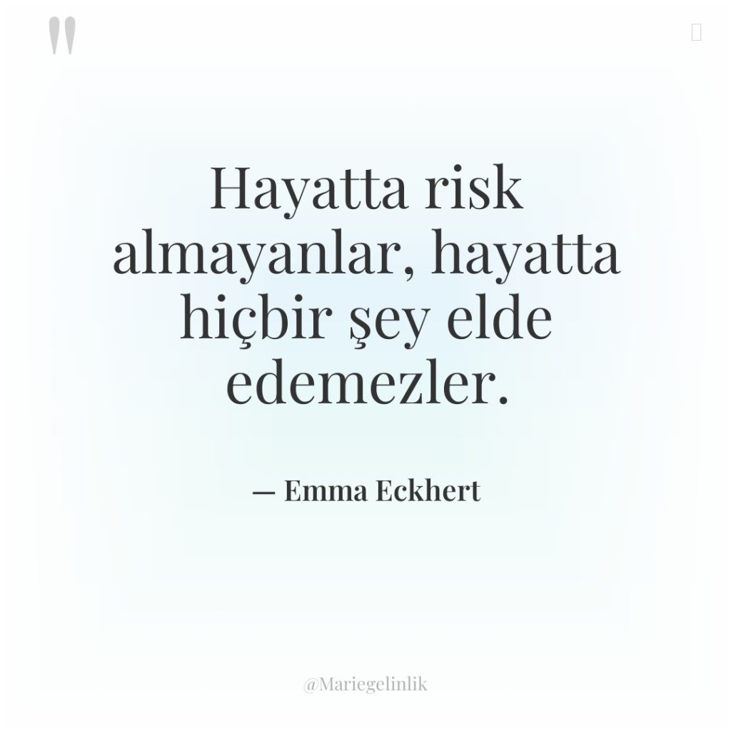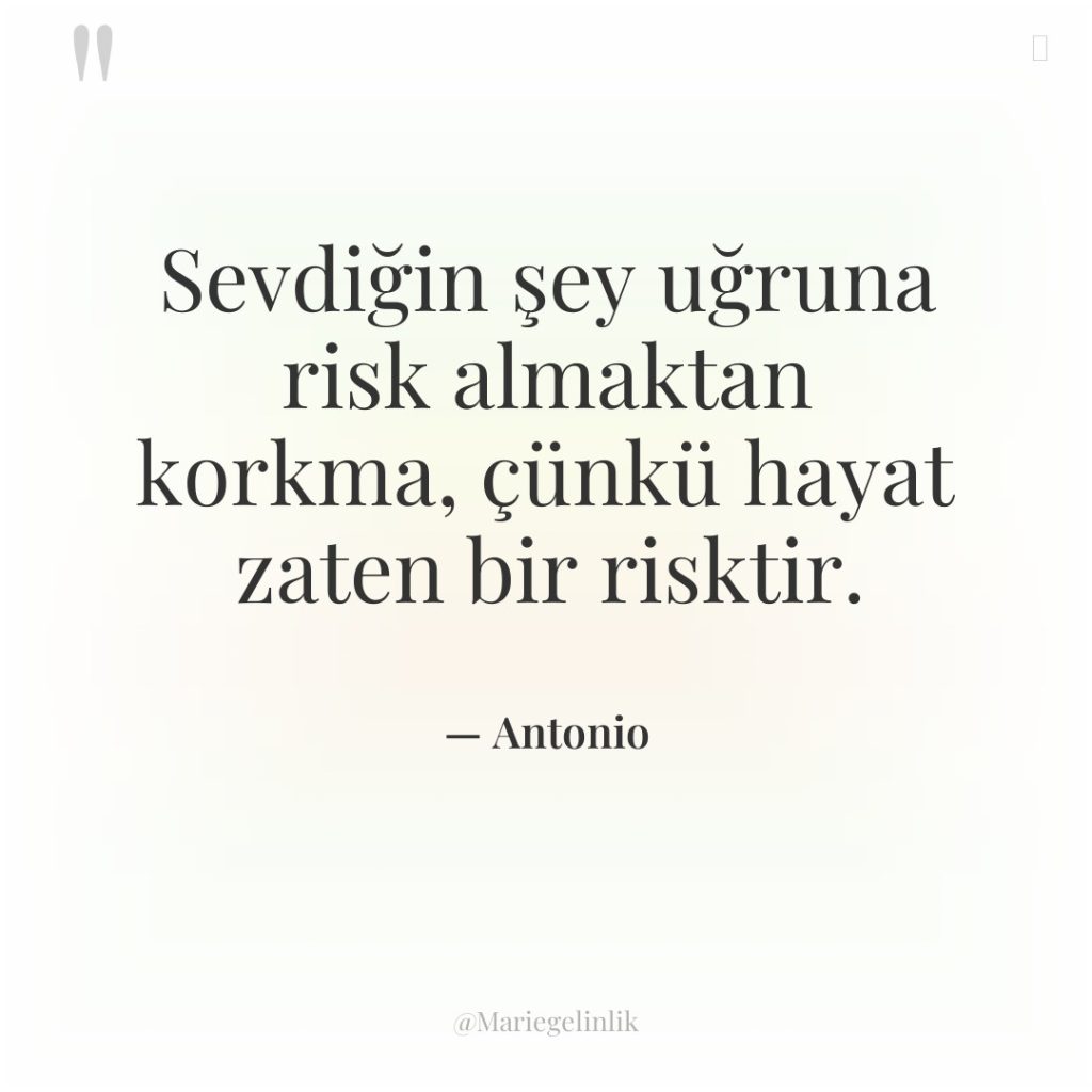 Sevdiğin şey uğruna risk almaktan korkma, çünkü hayat zaten bir…