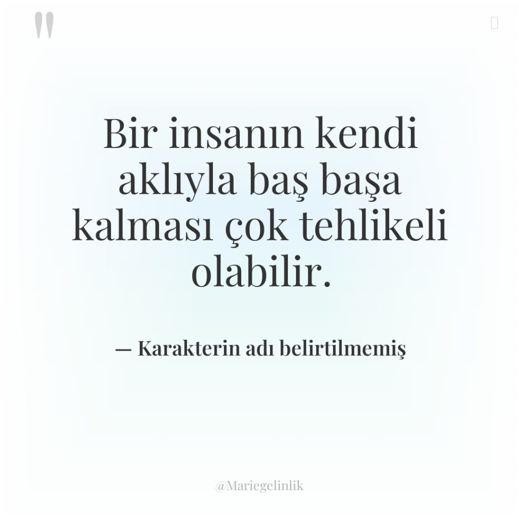 Bir insanın kendi aklıyla baş başa kalması çok tehlikeli olabilir.