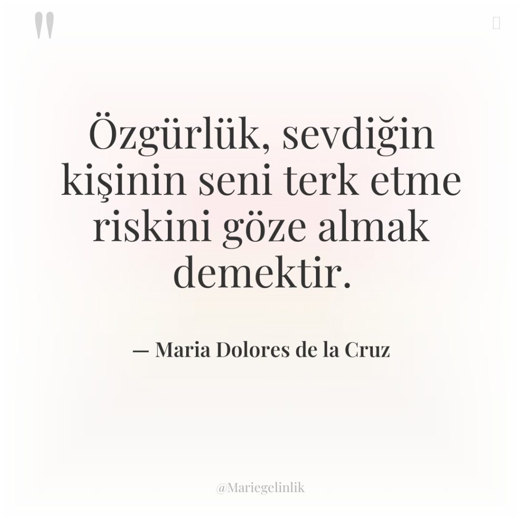 Özgürlük, sevdiğin kişinin seni terk etme riskini göze almak demektir.