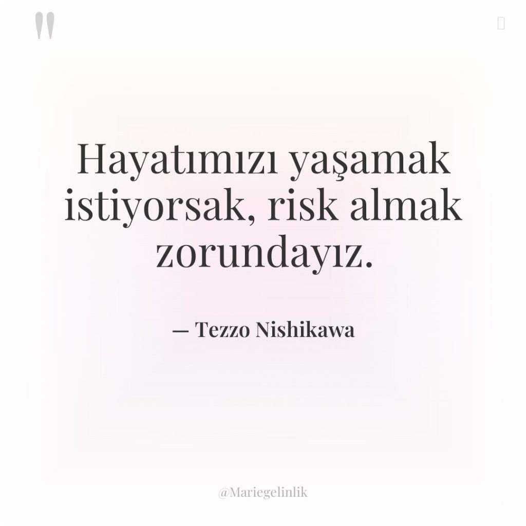 Hayatta en büyük risk, hiç risk almamaktır. Cesaretini topla ve…