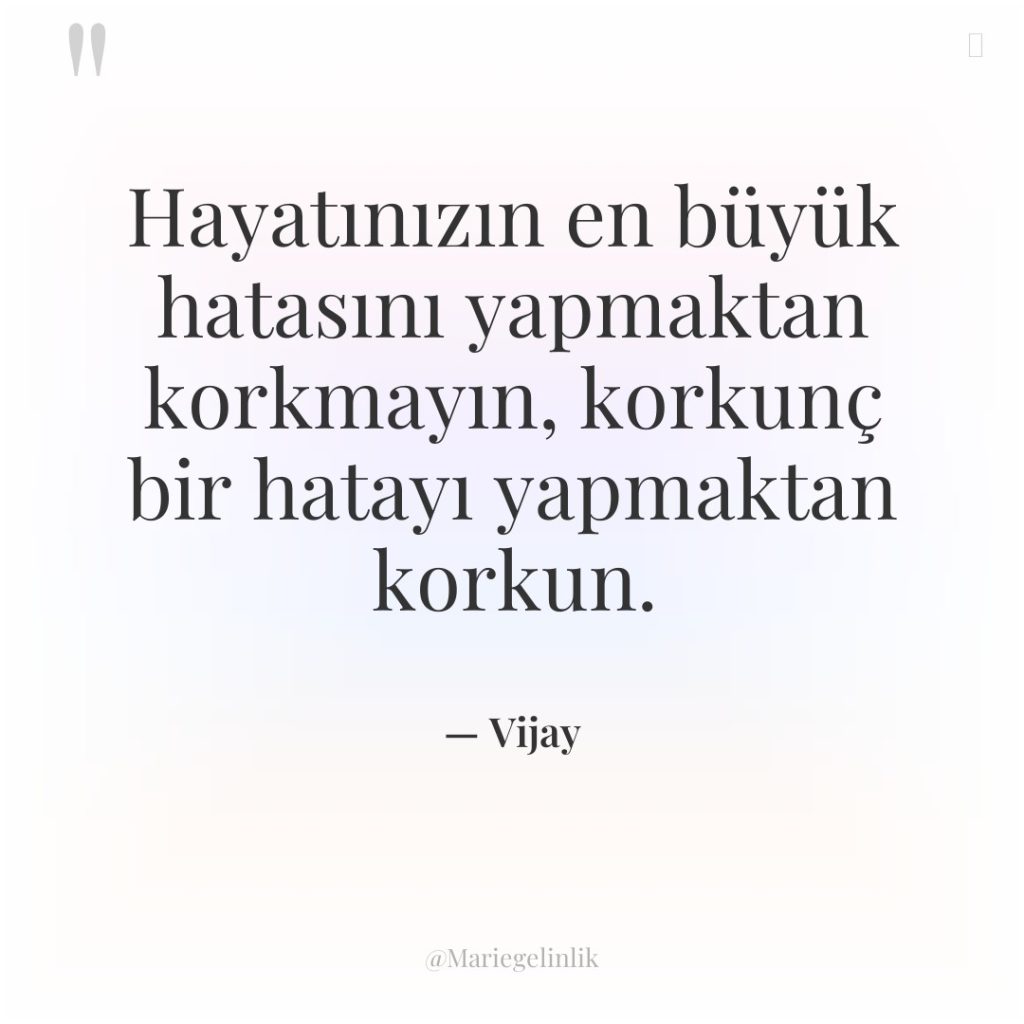 Hayatınızın en büyük hatasını yapmaktan korkmayın, korkunç bir hatayı yapmaktan…