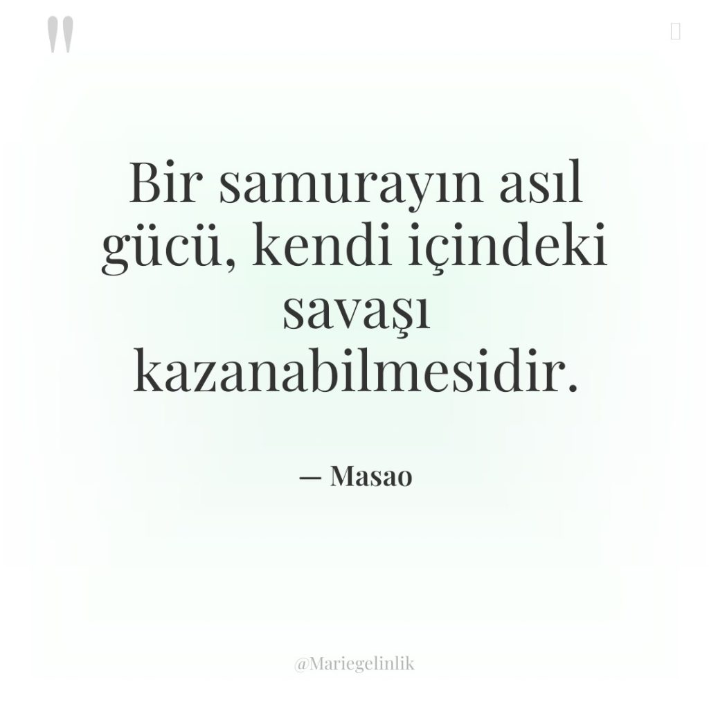 Bir samurayın asıl gücü, kendi içindeki savaşı kazanabilmesidir.