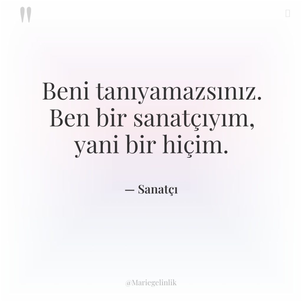 Beni tanıyamazsınız. Ben bir sanatçıyım, yani bir hiçim.