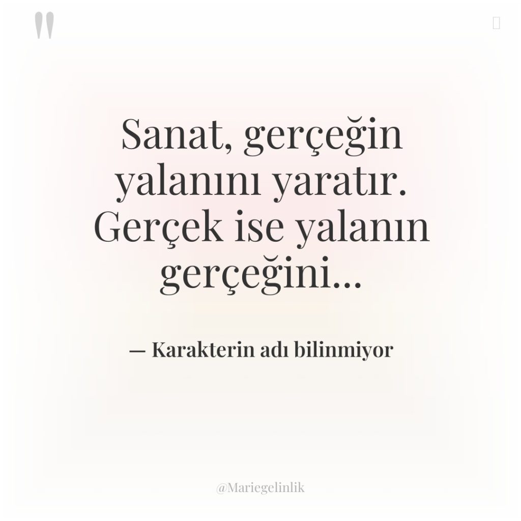 Sanat, gerçeğin yalanını yaratır. Gerçek ise yalanın gerçeğini…