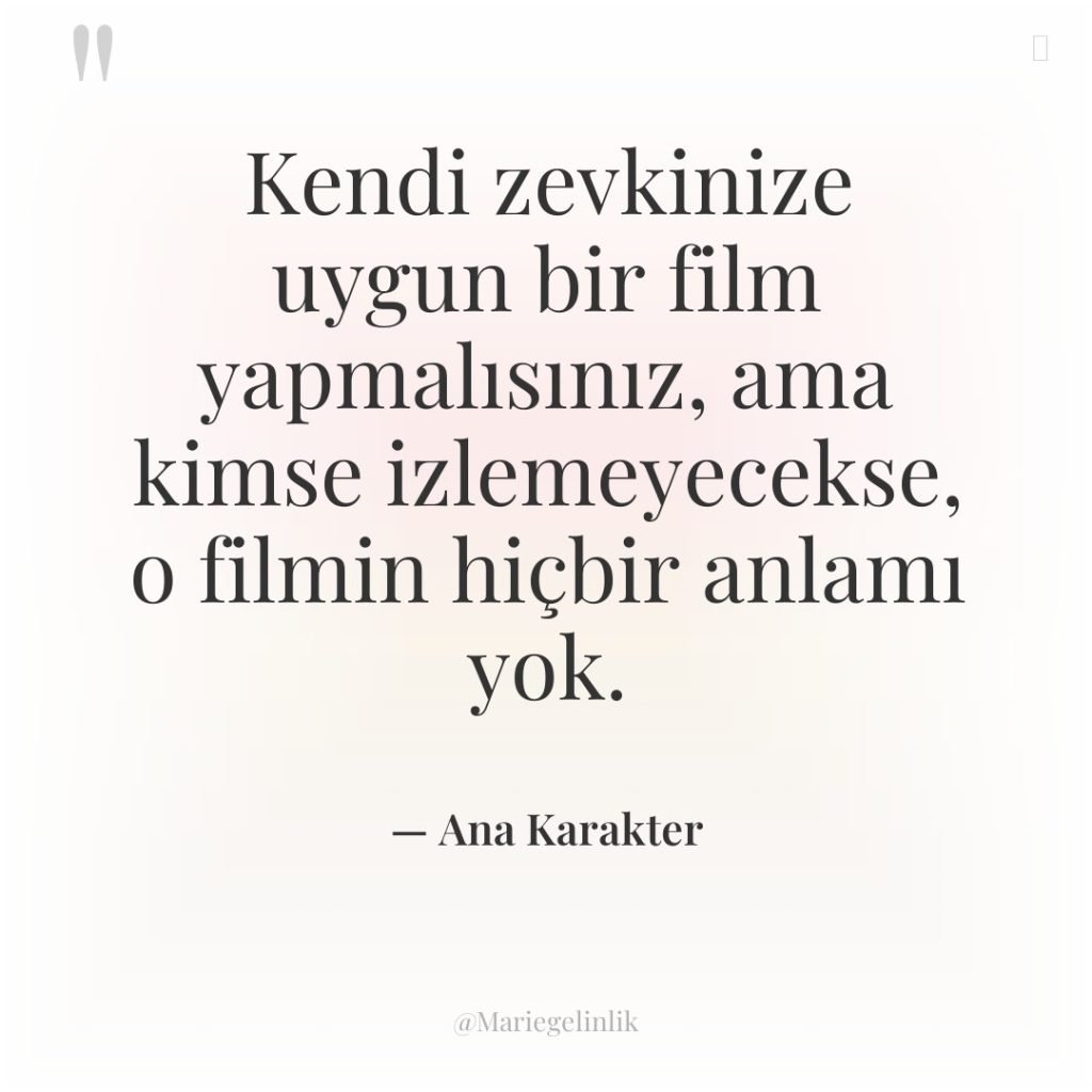 Kendi zevkinize uygun bir film yapmalısınız, ama kimse izlemeyecekse, o…