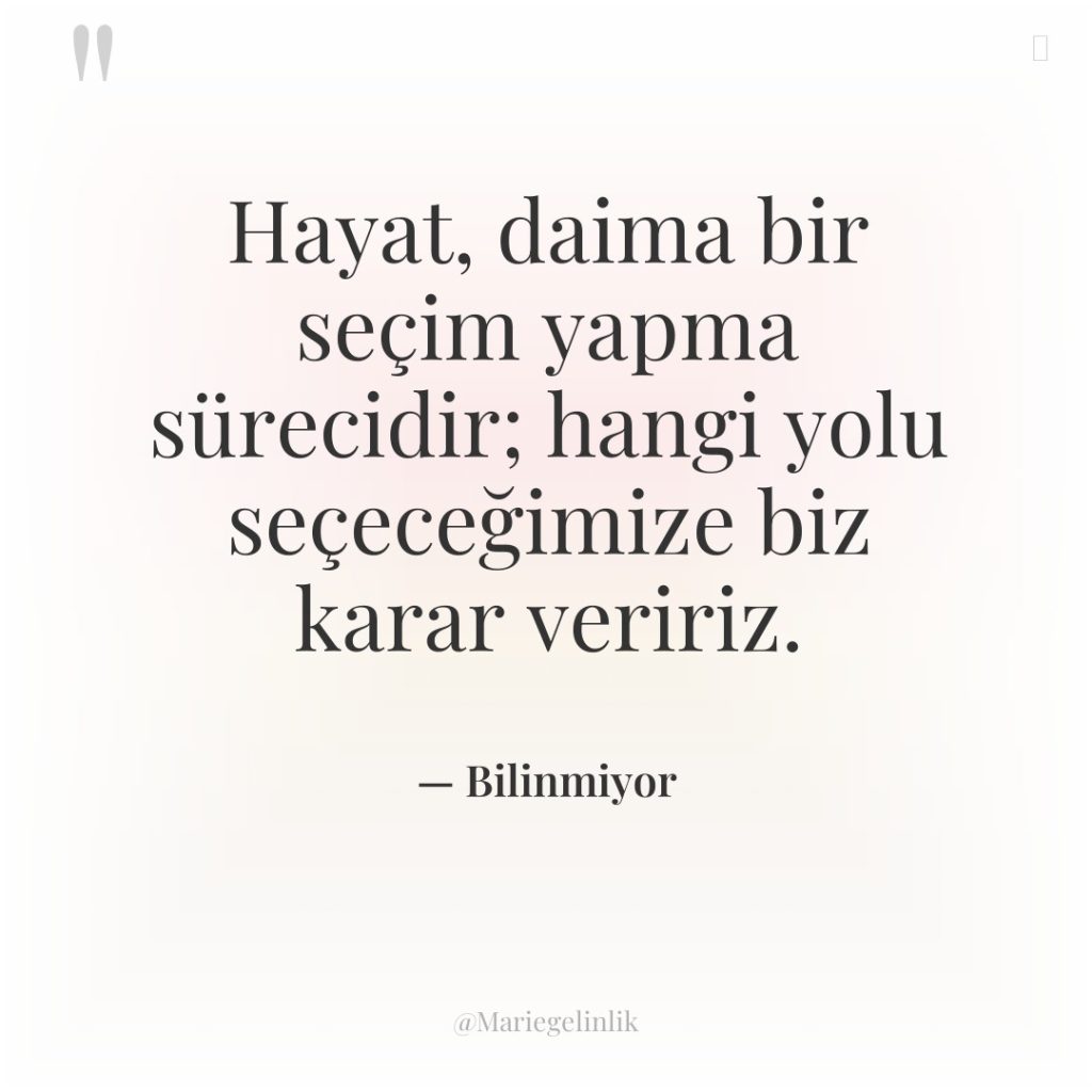 Hayat, daima bir seçim yapma sürecidir; hangi yolu seçeceğimize biz…
