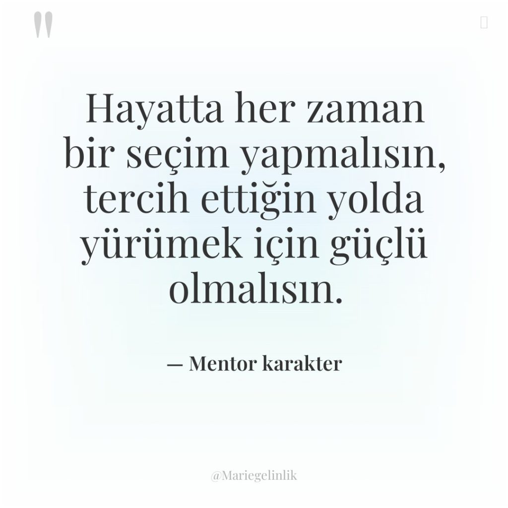 Hayatta her zaman bir seçim yapmalısın, tercih ettiğin yolda yürümek…